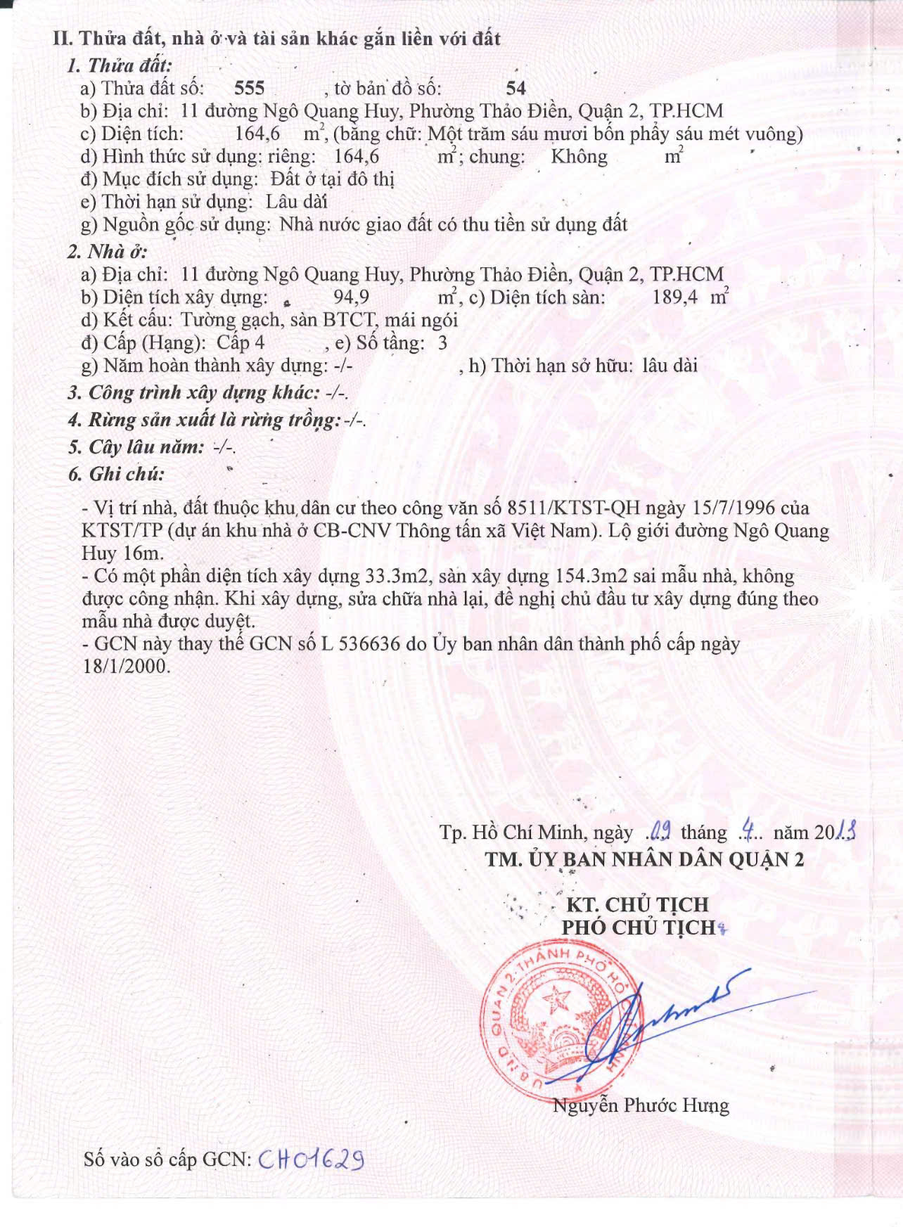 Chính chủ cần bán căn biệt thự mặt tiền đường Ngô Quang Huy (phường Thảo Điền cũ) nay là phường An Khánh TPHCM